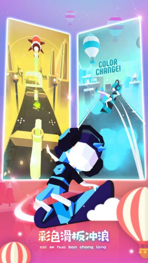 滑板色彩冲浪最新版为玩家带来炫彩的跑酷体验。游戏采用鲜艳的卡通画风,构建出充满活力的立体城市赛道。玩家将操控滑板在各种色彩斑斓的场景中穿梭,通过左右移动躲避障碍物。简单的操作方式让新手快速上手,而逐渐复杂的赛道设计又提供了持续的挑战。游戏包含多个特色关卡,每个场景都有独特的色彩主题和障碍组合。