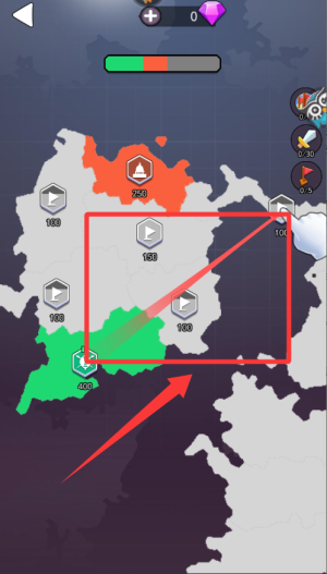 1、基础操作采用点击选择,拖动派遣的指挥方式。点击己方领地选择部队,拖至目标区域完成部署。