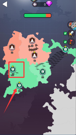1、首先了解基础规则,点击空地派遣士兵占领,相邻领地可相互支援。观察敌方兵力分布,优先争夺交界处关键点。