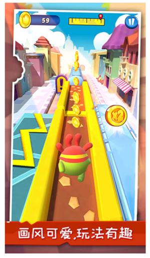 1、生动活泼的视觉表现,采用明亮色彩和圆润造型设计,打造充满童趣的跑酷世界。角色动作流畅自然,特效表现夸张有趣。
