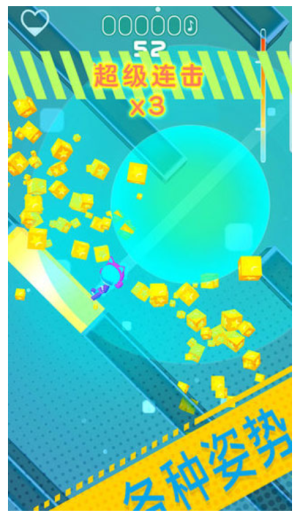 2、视觉表现突出,采用高饱和度的色彩搭配和流畅的角色动画,下落过程中的光影特效随音乐节奏变化,营造沉浸式体验。
