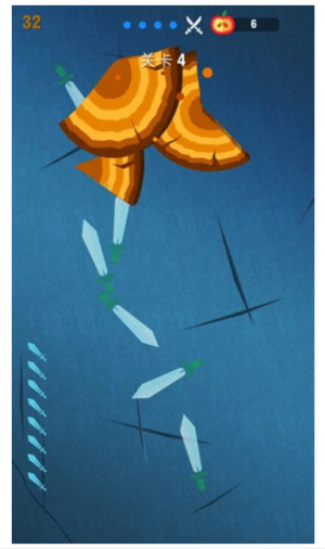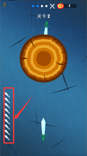 2、飞刀数量有限,合理分配每一把。每关给的飞刀数量不同,尽量均匀分布,避免扎堆。