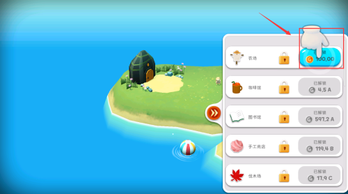 3、点击图标花费金币购买农场。