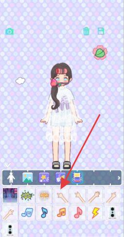 2、在装扮界面中,点击底部箭头所指的装饰类别,选择如音符等元素,为角色增添独特装饰,丰富装扮细节。