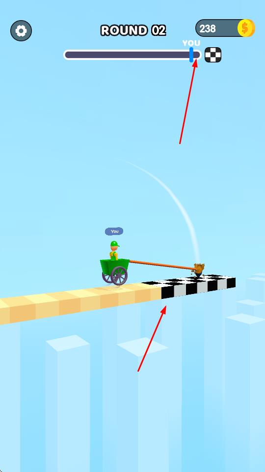 1、玩家操控推绿色小车的角色在平台上移动,通过操作使角色前进、后退或改变方向。