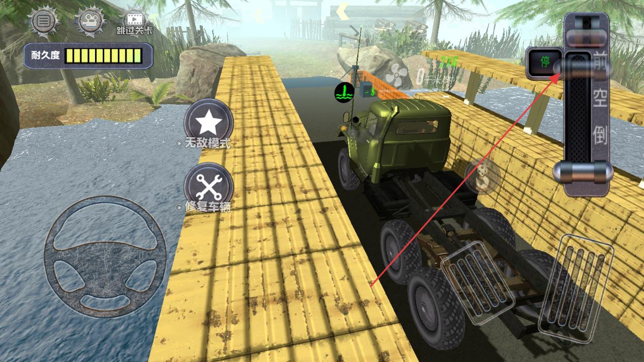 1、进入游戏,选择初始卡车并领取首单运输任务,检查货物固定状态后,启动车辆驶入首个野外场景,通过虚拟按键控制方向与档位,平稳穿越碎石路段。
