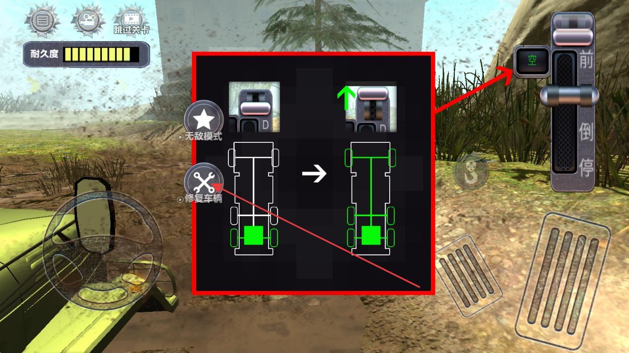 1、策略自救机制:搭载绳索救援、差速锁切换等实用功能,车辆陷困时需综合判断地形选择救援方案,避免盲目操作加剧困境。