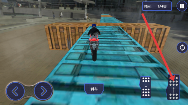 3、游戏过程中,通过右下角的操作按钮控制摩托车,合理使用加速等功能,应对赛道挑战。