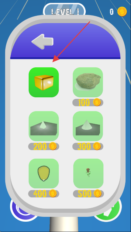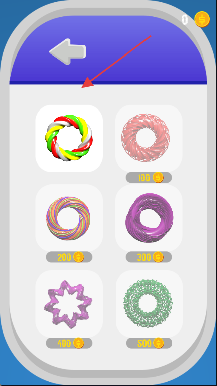 1、在物品选择界面,可使用金币购买如彩色环形等物品,不同物品标有价格。