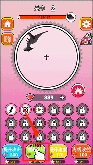 2、点击下方,升级你的攻击手段,讨伐巨龙。