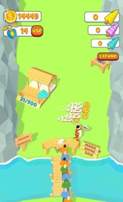 1、多元道具砍伐体系:解锁石斧、电锯、激光斧等10+砍树工具,每种道具拥有不同砍伐效率与特殊效果(如电锯触发范围砍伐,搭配金币升级系统提升伐木收益。