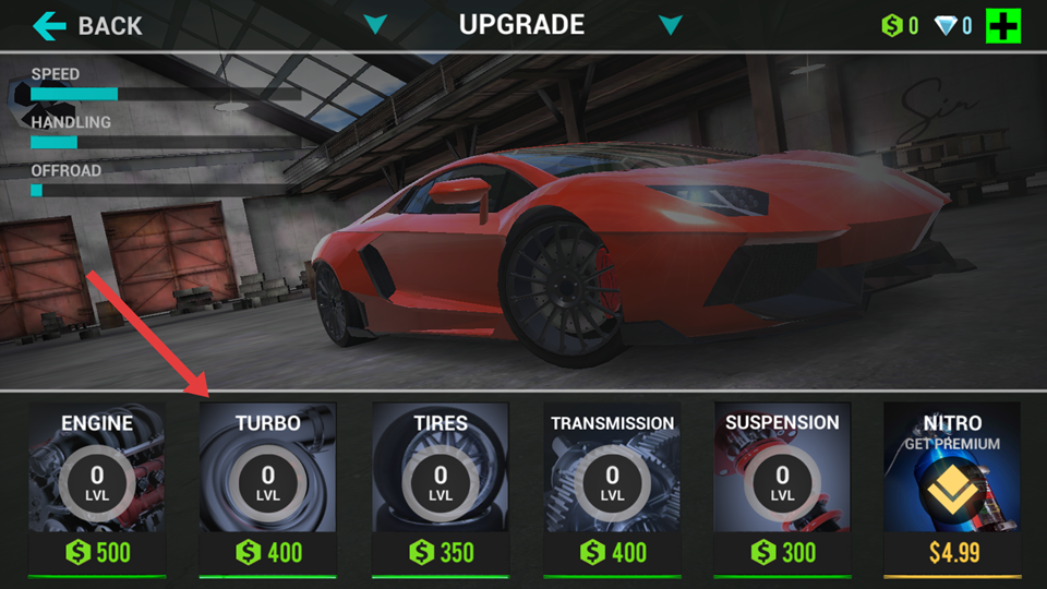 3、UPGRADE界面可对部件进行改装,升级后获得更高性能。