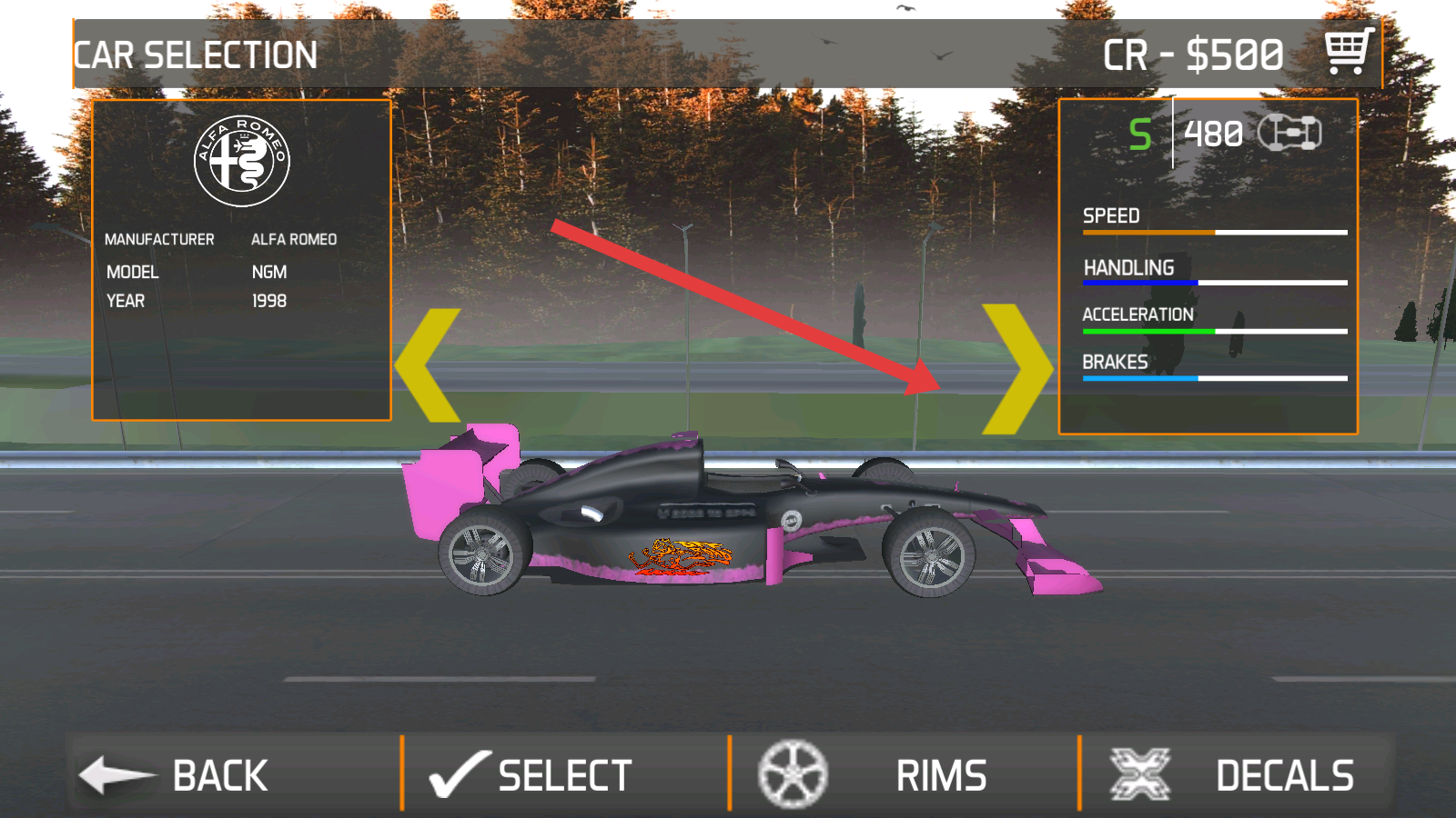 2、点击左右箭头预览车辆,点击SELECT选择完毕后下一步。