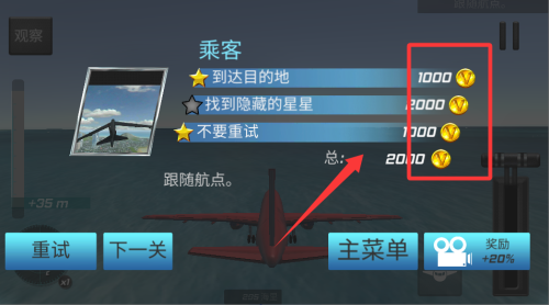 3、收集金币可购买新飞机,不同机型操作感各异。特殊挑战任务奖励丰厚,但需要熟练飞行技巧。