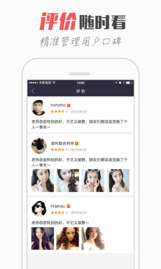 成功入驻的艺师可以及时查看用户对您的个人点评,精确掌握并管理您的口碑!