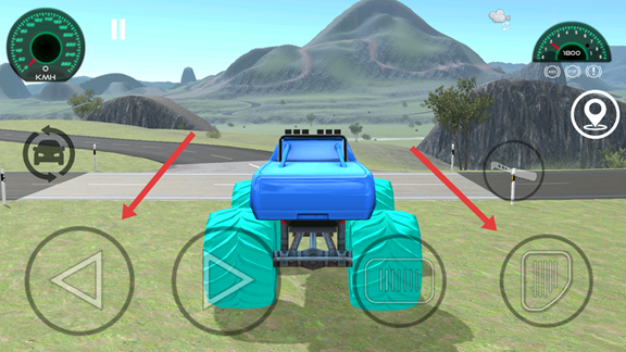 3、左边方向键控制方向,右手长按踏板加速启动车辆,定位标志查看位置。
