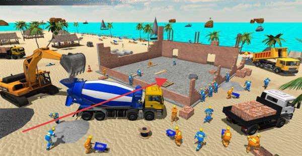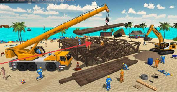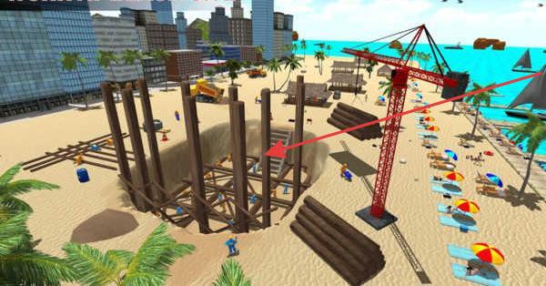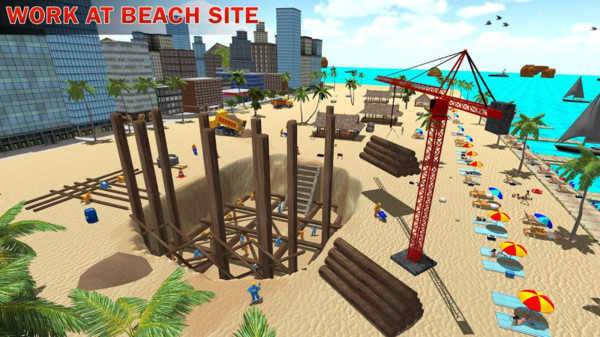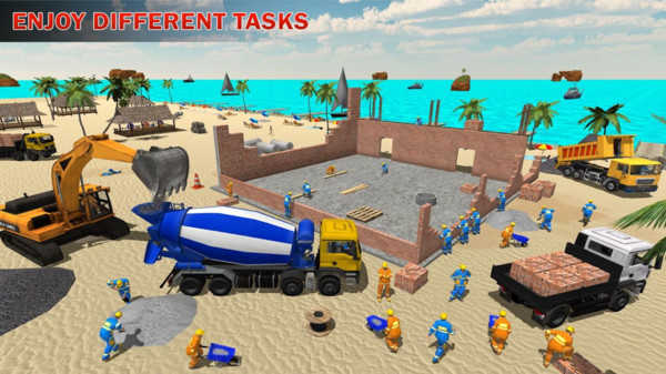 1、全流程建造体验:还原真实建筑工序,从清理沙滩平整土地开始,到浇筑地基搭建框架安装门窗,每个步骤需调配工人与机械协同作业,用起重机吊装预制构件,增强操作沉浸感。