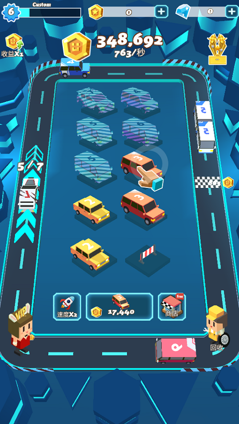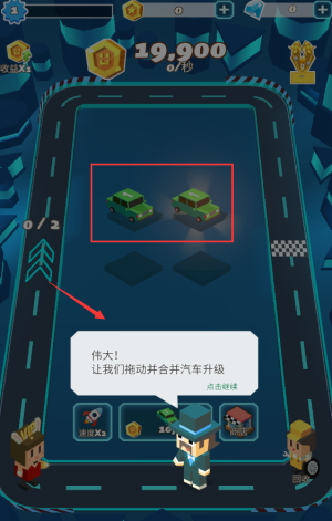 3、根据游戏提示,将两辆车合成更高级的车。