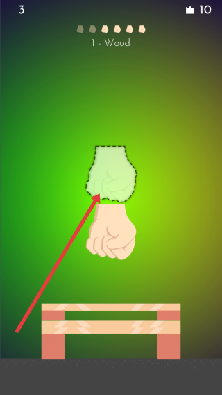2、操控虚拟拳头移动至木板指定击碎区域,精准点击屏幕触发动作,全力击碎目标木板。