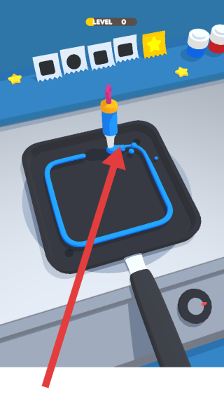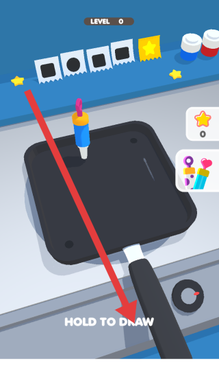 1、游戏初始【LEVEL 0】,看到【HOLD TO DRAW】提示,按住屏幕开始在烤盘上绘制图案,留意上方目标图案样式。