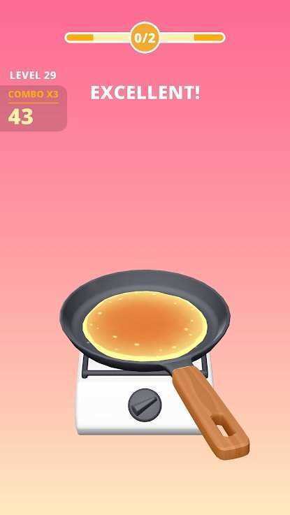 1、简约清新画风:采用简洁明快的色彩搭配与扁平化设计,金黄的煎饼、原木色的平底锅和纯色背景相互映衬,营造出舒适的视觉感受,搭配轻快音效,带来轻松愉悦的氛围。