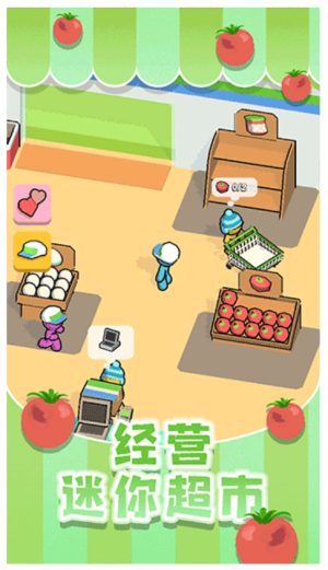 1、轻松愉悦的经营体验,采用明亮活泼的卡通画风,商品建模精致生动,顾客行为趣味十足,营造出欢乐的超市经营氛围。