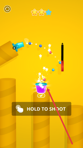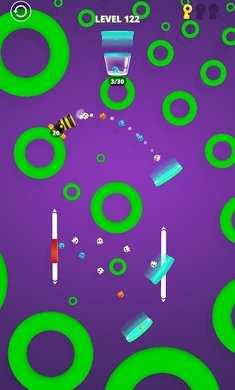 2、障碍反弹策略:面对橡胶棒时,可故意射击其边缘触发反弹,利用“镜面反射原理”让小球沿预设轨迹落入目标桶,实现曲线救国。