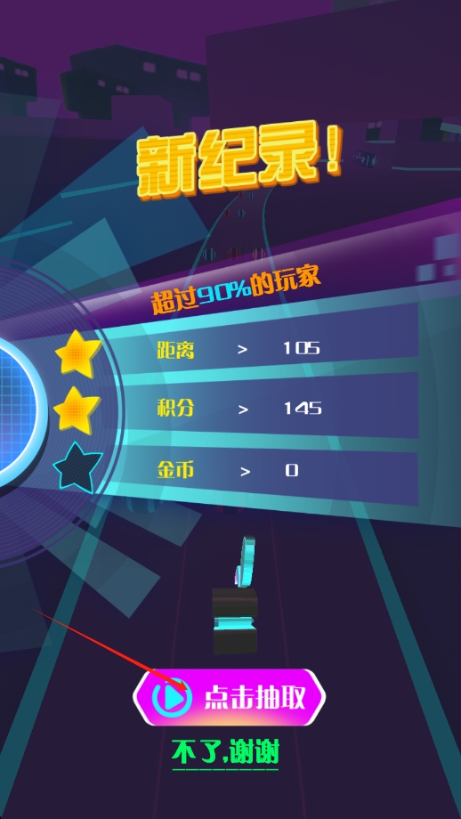 3、游戏结束获得新纪录后,点击点击抽取按钮,参与奖励抽取。
