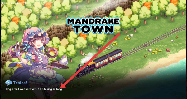 1、进入游戏可见【MANDRAKETOWN】,角色【Tealeaf】的话语,需要等待剧情或加载。