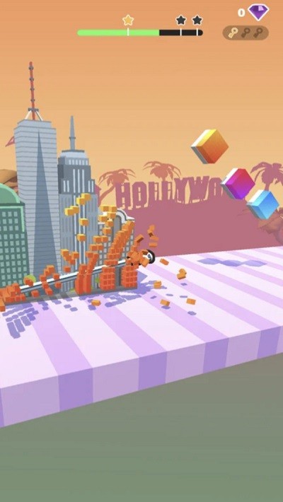 3、当成功摧毁所有目标方块并抵达关卡终点,根据闯关时间、操作技巧与道具使用情况评分,达成三星评价即可解锁新场景。