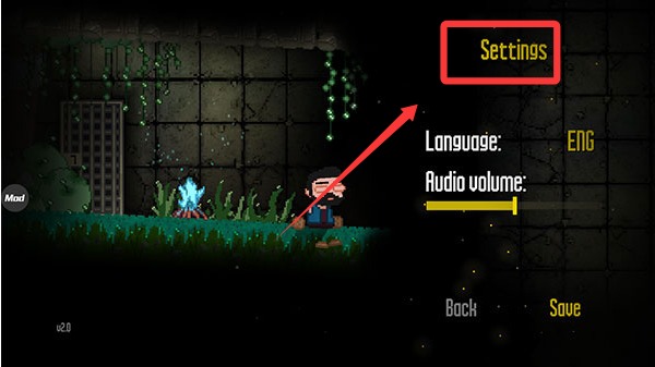 1、进入游戏后点击Settings设置,里面可以修改系统语言和游戏音效。