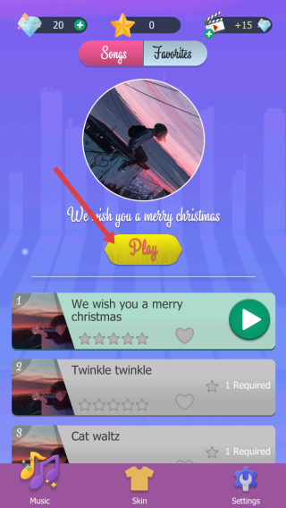 1、在歌曲选择界面,点击“Wewishyouamerrychristmas”歌曲下方的【Play】按钮,进入该歌曲的游戏关卡。