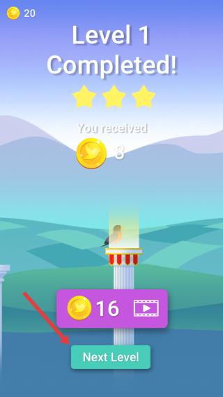 3、完成当前关卡(如Level1)获得三星评价和金币奖励后,点击【NextLevel】按钮,进入下一关。