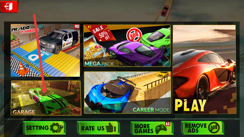 1、在有欧系主界面,优先点击GARAGE进入车库选购一辆豪车再回头点击PLAY开始。
