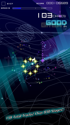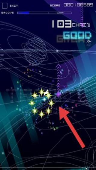 3、持续依据节奏和屏幕元素(如箭头指向的星星处)进行操作,获得“GOOD”等评价,不断提升连击数。