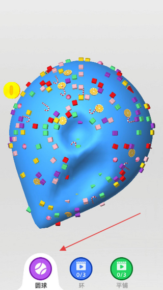 1、在游戏初始界面,可根据需求选择【圆球】【环】【平铺】等工具,对造型进行初步处理。