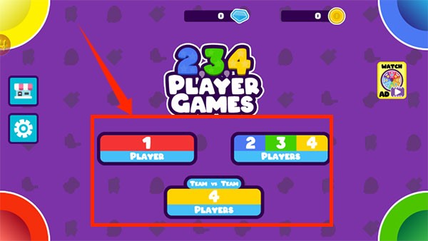 1、进入游戏后,先选择想要进入的游戏模式,如单人模式独自闯关,多人模式与好友组队对抗,或者四人模式享受同屏竞技的刺激。