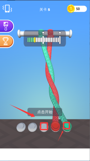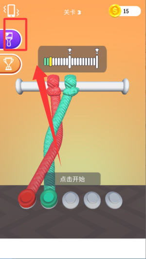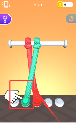 3、如果卡关太久,可以点击提示按钮,游戏会高亮显示可操作绳段,跟着指引操作就能顺利解开,适合小朋友学习逻辑思维。