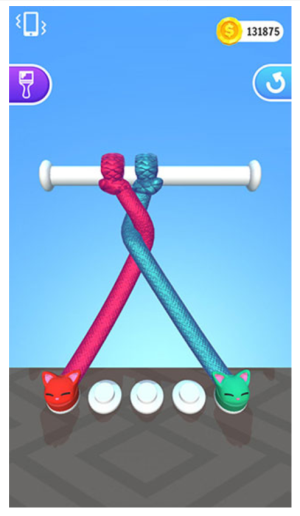 1、生动活泼的卡通画面,采用明快色彩和圆润线条设计,营造出轻松愉悦的游戏氛围,让解绳过程充满童趣。