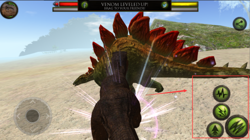 3、遇到恐龙,可以按右边键位进行攻击战斗。