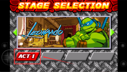 4、角色成长差异化体系,米开朗基罗双截棍蓄力触发空中连击,多纳泰罗木棍敲击地面生成震荡波,专属技能树影响战斗风格走向。
