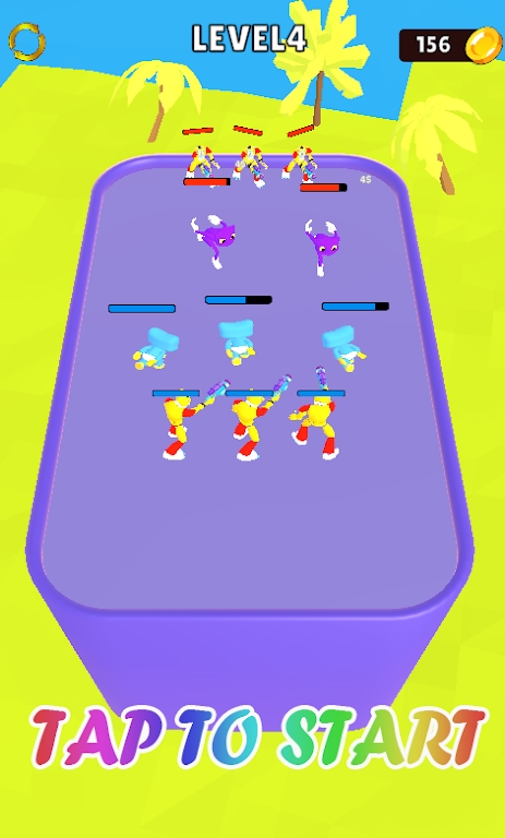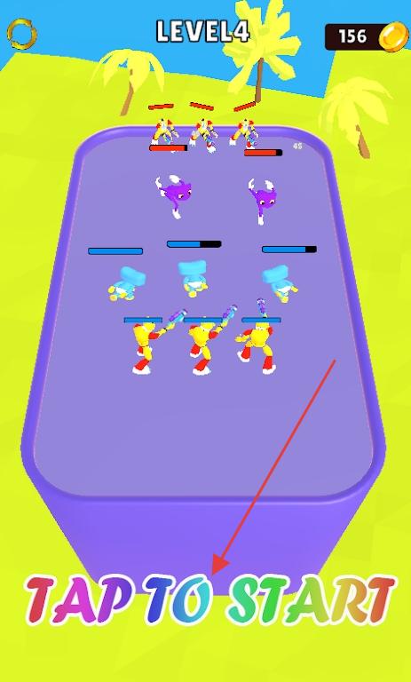 1、进入游戏界面看到【LEVEL4】及金币数156,点击底部【TAPTOSTART】开始游戏,踏入战斗场景。