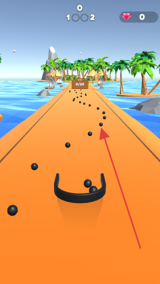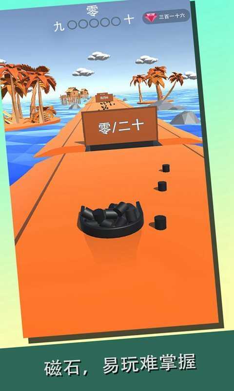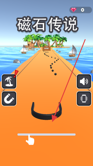 2、游戏过程中,专注赛道上的小球分布,灵活操控磁石,尽可能多地收集小球,同时留意上方的收集进度(如【0/20】)。