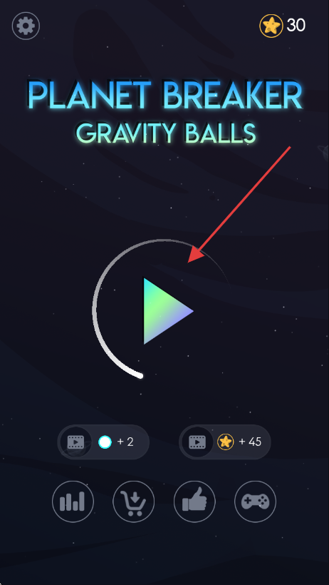 1、进入游戏界面后,点击中间的播放按钮,正式开启【PLANET BREAKER GRAVITY BALLS】游戏。