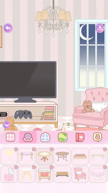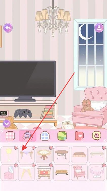 1、在室内布置界面,下方陈列着多种家具选项,点击相应家具如桌子等,即可对房间进行布置,精心打造专属个性化房间,让空间呈现独特风格。