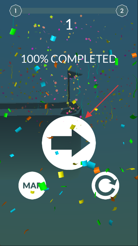 3、当显示【100%COMPLETED】时,点击箭头按钮,即可进入下一关卡继续游戏。