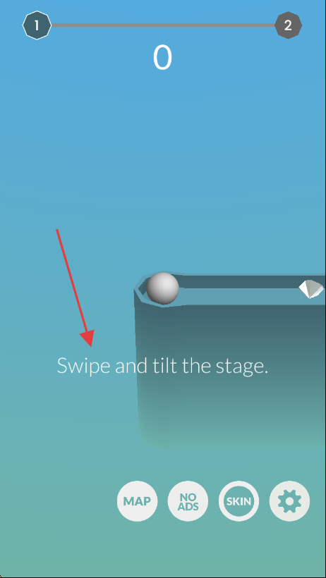 1、依照提示【Swipe and tilt the stage.】操作,通过滑动和倾斜屏幕来控制场景,引导球的移动以完成关卡目标。