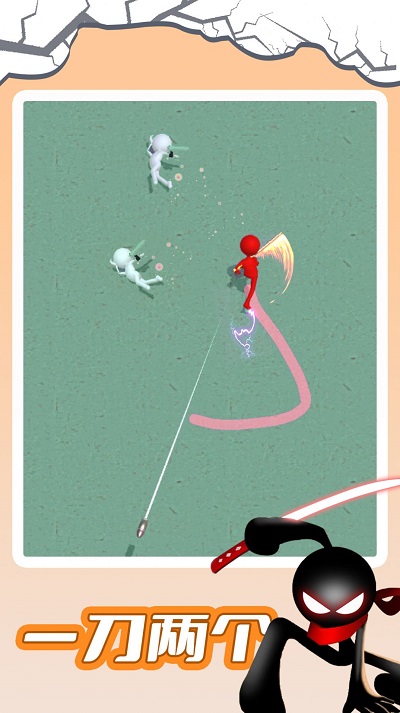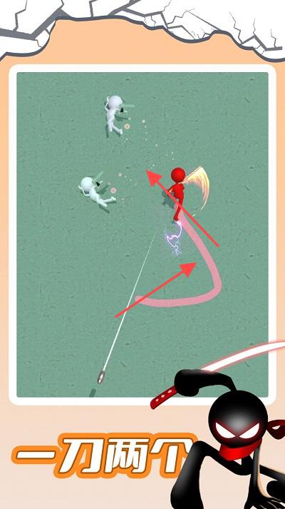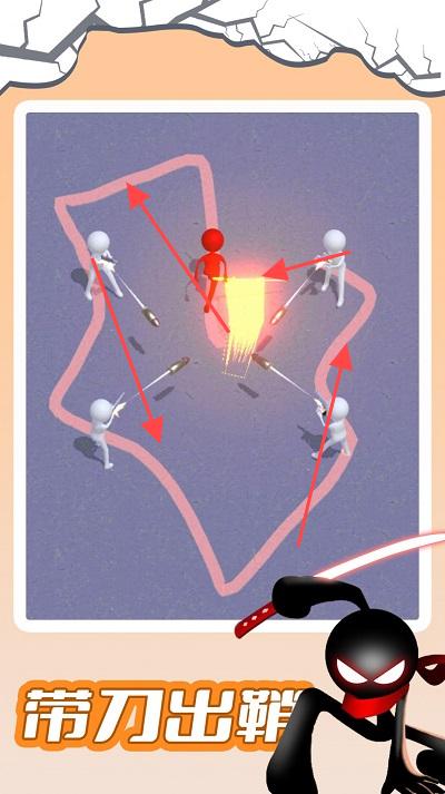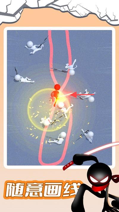 1、玩家操控红色角色,通过在屏幕上随意画线的方式,指挥角色移动并攻击白色敌人。