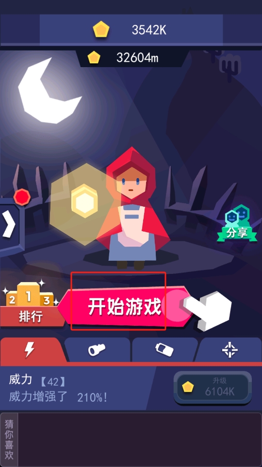 2、装备升级强化:使用获取的金币升级装备,提升手电筒性能与自身实力,应对更强大的敌人与挑战。