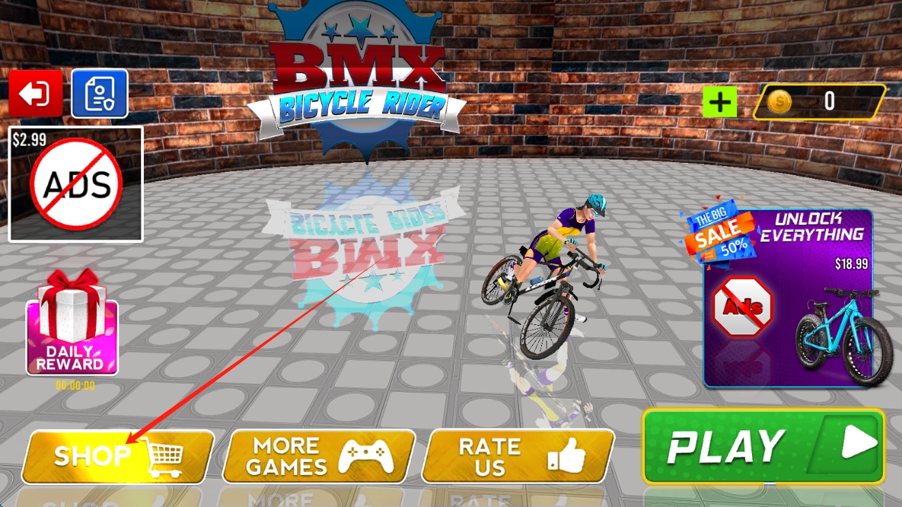 3、点击按钮进入商城,收集特定组合的成就奖励解锁限定自行车皮肤,如"连续赢得5场比赛""在同一赛道完成所有特技动作"。